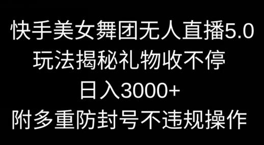 快手美女舞团无人直播5.0玩法揭秘,礼物收不停,日入3000+,内附多重防封号不违规操作【揭秘】