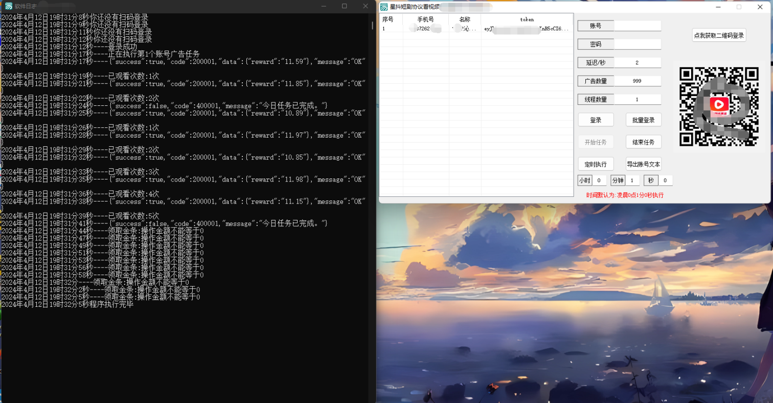 协议自动看广告+短剧金B自动领取,挂机就行